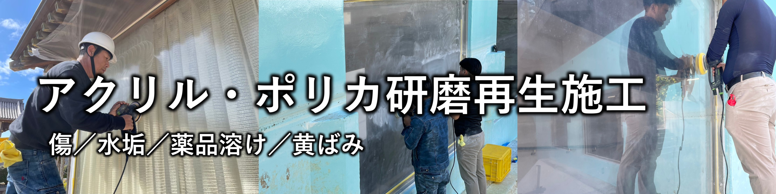 弊社の特殊な研磨技術により、関西だけでなく日本全国の動物園、水族館、研究所の大型水槽、ゴルフカート、観覧車、車、バイクなどの傷の除去、黄ばみ除去などの作業をさせて頂いております。