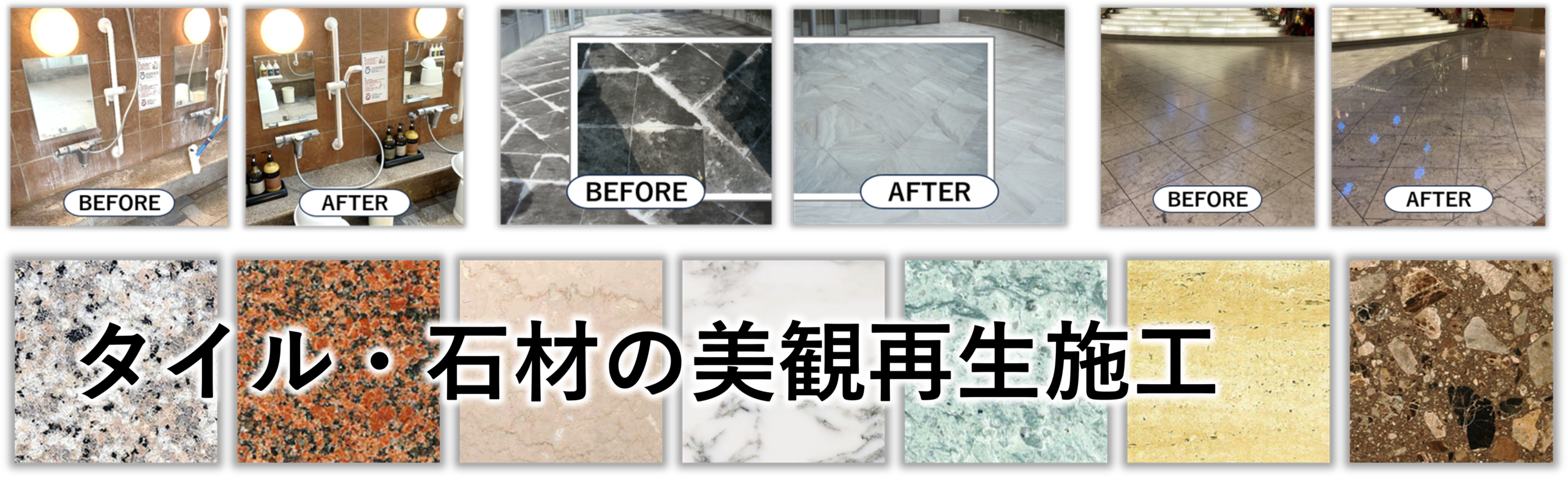 石材・タイル表面の艶が無くなる、または退色してきた場合、研磨・コーティングで復元させることができます。石材・タイル本来の風合いを復元できます。